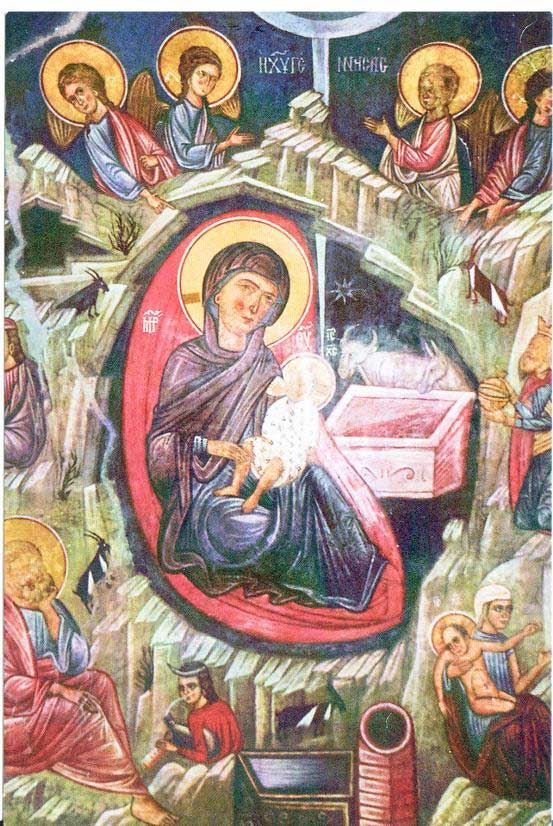 Birth of Christ, Agios Nikolaos tis Stegis Church, 14th century wallpainting