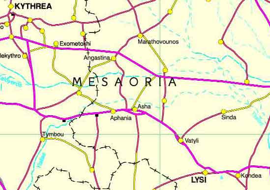 The Mesaoria is a broad, sweeping plain which makes up the center of the island of Cyprus. Geography The Mesaoria plain is bounded on the east and west by the Mediterranean Sea, on the south by the Troodos mountains and on the north by the Kyrenia mountains. It has an area of approximately 1000 km² (390 mi²). It rises to an altitude of 325 m (1066 ft), with an average elevation of perhaps 100 m (330 ft). There are a number of rivers and other water courses crossing this plain, but none of them have water year round. The word "Mesaoria" (sometimes spelled "Mesarya"), means "between the mountains" in Greek. For the most part, the Mesaoria is a flat, bare plain, with few trees except for those planted as windbreaks. It is the agricultural heartland of Cyprus, but it depends completely on winter rainfall and irrigation for its water, which limits production. It is also the most settled region on the island, containing dozens of villages and many of the largest towns, including the capital, Nicosia. Due to deforestation, much of the Mesaoria is covered with "Kafkalla", which is a local term referring to calcium carbonate that has been compacted into a hardpan. The only plants that grow well on this surface are quickly eaten by grazing animals, which has greatly exacerbated soil erosion. The climate can be uncomfortably hot in the summer, with temperatures of 40°C being common. The rainfall on the plain is significantly lower than in the mountains, but in recent years a number of dams and irrigation systems have been constructed to capture the mountain runoff. History Twentry million years ago Cyprus was actually two islands, which were the predecessors of the Kyrenia and Troodos mountain ranges. Approximately one million years ago, the Mesaoria plain arose, resulting in the current island of Cyprus. At various times, changing levels of the Mediterranean sea covered and exposed the plain; it has been in its present form since the end of the Pleistocene. The Mesaoria plain shows evidence of cultivation dating from the neolithic. In classical times the entire center of the island was covered by dense forests. Most of these were cut down in the middle of the first century BC to provide wood for the Ptolemaic navy. Additionally, much wood was harvested to provide energy for the extraction of copper. However, as recently as the late sixteenth century there were still significant stands of trees on the plain. Today, the only remaining forested areas are on the surrounding mountains, particularly the Troodos range. Retrieved from "http://en.wikipedia.org/"