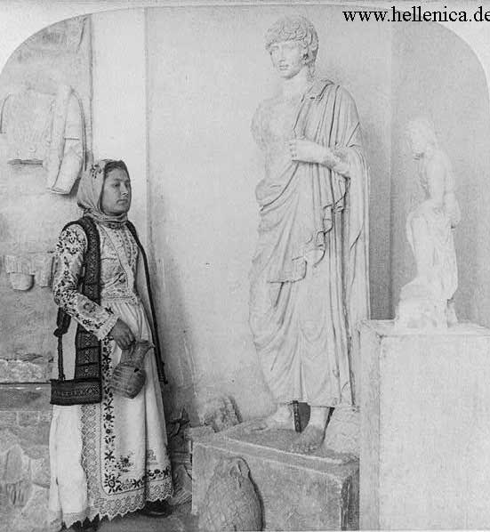 A woman in front of the Antinous sculpture (1.83 m, 2nd c. AD, Museum of Eleusis Inv. 5092)