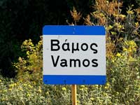 Below the modern town square at the top of the hill is old Vamos. Here a group of locals set up Vamos SA, an enterprise devoted to preserving local buildings and customs and attracting a sustainable form of tourism. Several of the old houses have been rebuilt as tourist accommodation. There is a well-regarded taverna - the Cistern of the Bloumosifi - as well as an art gallery, a café and a general store selling local products. Vamos' population is estimated at 600. Vamos municipality The municipality extends from the main national road across the island down to the coast, covering Cape Drapano and much of eastern Apokoronas. Division of the municipality with a population 2932 (2001 census)