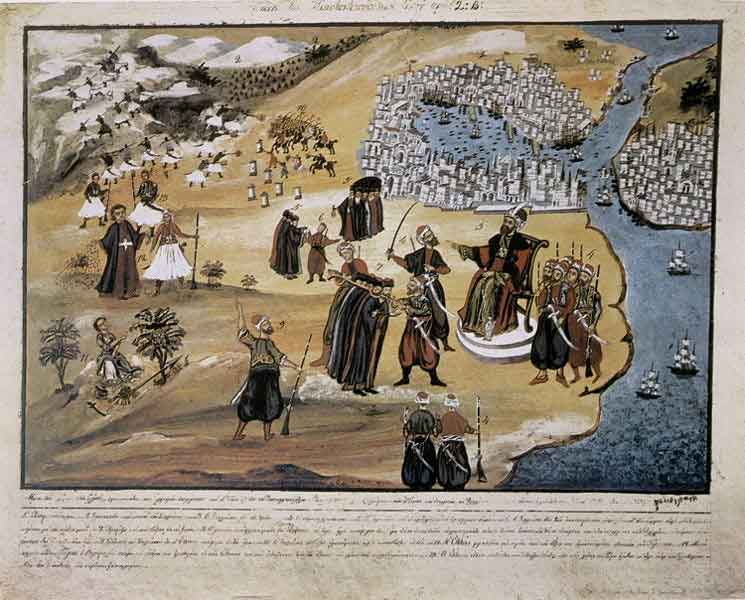 Scene from the Greek War of Independence. Painting by Panagiotis Zografos, under guidance of Yannis Makriyannis