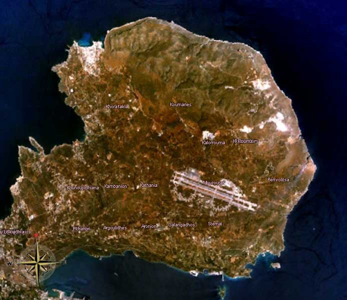 Chania's airport, Daskalogiannis Airport (IATA: CHQ, ICAO:LGSA), named after folk-hero Daskalogiannis, is on the central plateau and is easily reached from Chania by car, taxi or public transport. Akrotiri forms a municipality of Chania Prefecture, with its headquarters at Pythari (or Pithari). Division of the municipality with a population 10321 ( 2001 census)