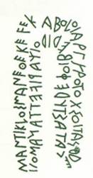 A 20 cm bronze sculpture, early 7th century BC from Thebes (The Mantiklos Apollo) dedicated to Apollo, Boston Museum of Fine Arts. The inscription on the thighs in hexameter, isolated from Mantiklos after some image processing operations: