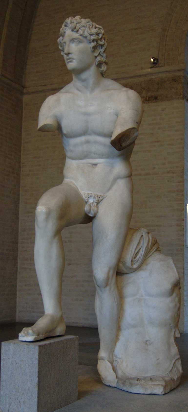 Glyptothek, Munich, Artist/Maker Unknown (original by Euphranor) So called “Alexander Rondanini” (head). Ancient copy, the original belongs to a group created by Euphranor: King Philip of Macedon on his chariot lead by 4 horses; his son Alexander, taking on the chariot, holds the reins in both hands (armor and garb added the copist). Creation of the group after the Battle of Chaeronea, 338 BC. Credit line Acquired in 1814 from Rondanini Palace, Rome Accession number Inv. 298 Location Room 10 (Saal des Alexander) Photographer/source User:Bibi Saint-Pol, own work, 2007-02-08 All text is available under the terms of the GNU Free Documentation License