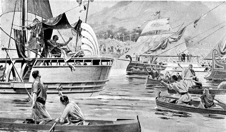 The wounded Alexander passing through his fleet, A. Castaigne