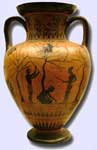 Antimenes painter, Greek vase painter, flourished circa 530-510 BC. One of the most prolific black-figure artists of Athens he is named after a Kalos inscription exalting Antimenes on a hydria (Leiden, Rijksmus. Oudhd., PC 63). 140 pieces of his are known.