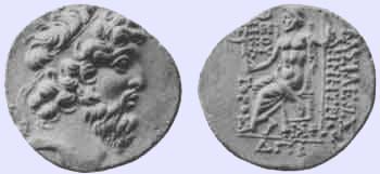 Coin of Demetrius II. The reverse shows Zeus bearing Nike. The Greek inscription reads ΒΑΣΙΛΕΩΣ ΔΗΜΗΤΡΙΟΥ ΘΕΟΥ ΝΙΚΑΤΟΡΟΣ. The date ΔΠΡ is year 184 of the Seleucid era, corresponding to 129–-128 BC. [Source] Demetrius II (d. 125 BC), called Nicator (Victor), was the middle son of Demetrius I Soter. As a young boy, he fled to Crete after the death of his father, his mother and his older brother, when Alexander Balas usurped the Seleucid throne. About 147 BC he returned to Syria, and with the help of Ptolemy VI Philometor, king of Egypt, regained his father's throne. The Egyptian king also divorced his daughter Cleopatra Thea from Balas and remarried her to Demetrius. Alexander fled to Cilicia. However, Demetrius was not a popular king. The people of Syria had little respect for the young boy, who had come to power with the help of Egypt and Cretan mercenaries led by the ruthless condottier Lasthenes. The Antiochenians offered the Seleucid throne to Ptolemy VI, who had already conquered most of southern Syria for his own interest. However, he insisted Demetrius would become king, knowing that Rome would never tolerate a unified hellenistic state, and the year after Ptolemy VI was killed when Alexander Balas made a last desperate attempt to regain his throne. The Egyptian troops marched home, leaderless and disillusioned, and with Balas dead as well Demetrius became sole master of the Seleucid kingdom. But new troubles soon arose. The pillaging of the Cretan soldiers caused the Antiochenians to rise in rebellion, and only after terrible massacres could order be restored. Soon after, the general Diodotus conquered Antioch and had his protegé Antiochus VI Dionysus, the infant son of Alexander Balas, proclaimed king. Demetrius proved unable to retake the capital,instead establishing himself in Seleucia. Diodotus had Antiochus VI deposed a few years later, and made himself King as Tryphon, but the division of the kingdom between the legitimate Seleucid heir and the usurper in Antioch persisted. Defeat and captivity In 139 BC Parthian activity forced Demetrius to take action. He marched against Mithradates I, king of Parthia and was initially successful, but was defeated in the Iranian mountains and taken prisoner the following year. The Babylonian province of the Seleucid empire became Parthian, but in Syria was the dynasty's grip was reassured under Antiochus VII Sidetes, the younger brother of Demetrius, who also married Cleopatra Thea. King Mithradates had kept Demetrius II alive and even married him to a Parthian princess named Rhodogune, with whom he had children. However, Demetrius was restless and twice tried to escape from his exile on the shores of the Caspian sea, once with the help of his friend Kallimander, who had gone to great lengths to rescue the king: he had travelled incognito through Babylonia and Parthia. When the two friends were captured, the Parthian king did not punish Kallimander but rewarded him for his fidelity to Demetrius. The second time Demetrius was captured when he tried to escape, Mithradates humiliated him by giving him a golden set of dice, thus hinting that Demetrius II was a restless child who needed toys. It was however for political reasons that the Parthians treated Demetrius II kindly. In 130 BC Antiochus Sidetes felt secure enough to march against Parthia, and scored massive initial successes. Now Mithradates released what he thought was a powerful move: he released Demetrius, hoping that the two brothers would start a civil war. However, Sidetes was defeated soon after his brother's release and never met him. Mithradates set people to pursue Demetrius, but he could return safely home to Syria to regain his throne and his queen as well. A failed second reign However, the Seleucid kingdom was now but a shadow of its former glory, and Demetrius had a hard time to rule even in Syria. Recollections of his cruelties and vices - along with his humiliating defeat - caused him to be greatly detested. The Egyptian queen Cleopatra II set up an army for Demetrius, hoping to engage him in her civil wars against her brother king Ptolemy VIII, but this only added to his grief. The troops soon deserted, and king Ptolemy VIII reacted by setting up yet another usurper, a man named Alexander II Zabinas against Demetrius. In 126 BC Demetrius was defeated in a battle at Damascus, and killed on a ship near Tyre, after his wife Cleopatra Thea had deserted him. His miserable death - he was captured and possibly tortured - was a fitting epitaph to the many shortcomings of his reign. Demetrius II was certainly uncapable to handle the developing threats to the Seleucid empire, but his reputation of cruelty was probably undeserved. He was only around fourteen at his coronation, and the real power was in the hands of others. He was succeeded by his queen Cleopatra Thea and then by two of their sons, Seleucus V Philometor and Antiochus VIII Grypus.