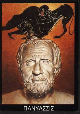 ![]() Panyasis (more correctly, Panyassis) was a native of Halicarnassus, and probably the maternal uncle of Herodotus. He began to be known about 489 BC, continued in reputation till 467 BC, in which year he is placed by Suidas, and was put to death by Lygdamis (c. 454 BC), tyrant of Halicarnassus, probably about the same time that Herodotus left his native city, that is, about B.C. 457. Ancient writers mention two poems by Panyasis. Of these the most celebrated was entitled Heracleia or Heracleias and gave a detailed account of the exploits of Hercules. It consisted of fourteen books and nine thousand verses, and appears, as far as we can judge from the references to it in ancient writers, to have passed over briefly the adventures of the hero which had been related by previous poets, and to have dwelt chiefly upon his exploits in Asia, Libya, etc. An outline of the contents of the various books, as far as they can be restored, is given by Miiller, in an appendix to his work on the Dorians. The other poem of Panyasis bore the name of lonica, and contained seven thousand verses. It gave the history of Neleus, Codrus, and the Ionic colonies. Suidas says it was written in pentameters ;but it is improbable that, at so early a period, a poem of such a length was written simply in pentameters ; still, as no fragments have come down to us, we have no certain information on the subject. We do not know what impression the poems of Panyasis made upon his contemporaries and their immediate descendants, but it was probably not great, since he is not mentioned by any of the great Greek writers. But in later times his works were extensively read, and much admired. The Alexandrine grammarians ranked him with Homer, Hesiod, Pisander, and Antimachus, as one of the five principal epic poets, and some even went so far as to compare him with Homer. Panyasis occupied an intermediate position between the later cyclic poets and the studied efforts of Antimachus, who is stated to have been his pupil. From two of the longest fragments which have come down to us, it appears that Panyasis kept close to the old Ionic form of epic poetry, and had imbibed no small portion of the Homeric spirit. The fragments of the Heraclea are given in the collections of the Greek poets by Winterton, Brunck, Boissonade, and Gaisford ; in Diintzer s Fragments of Greek epic poetry ; in Tzschirner s De Panyasidis Vita et Canmnibus Dissertatio, Vratisl., 1836 ; and in Funcke s De Panyasidis Vita ac Poesi Dissertatio, Bonn, 1837. References All text is available under the terms of the GNU Free Documentation License