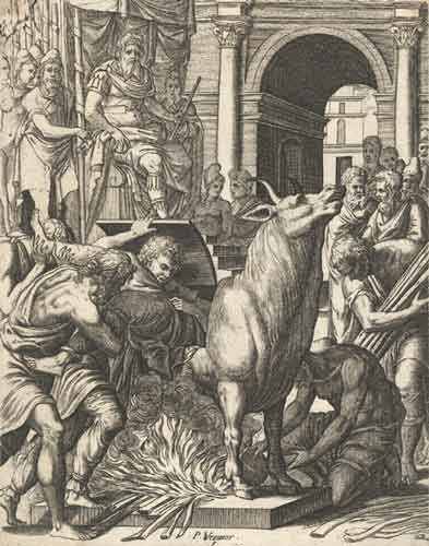 Perillus forced into the bronze bull, Pierre Woeiriot (1531-1596) This article incorporates text from the public domain 1911 Encyclopædia Britannica.