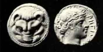 Rhegium Tetradrachm, Lion Head, Head of Apollo with Text "REGINON", 415/387 BC