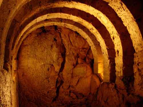 Nekyomanteio or Necromanteio Location In Mesopotamo. 52km south of Igoumenitsa, 20km south of Parga. History 8th Century BC - Described by Homer. Late 4th Century BC - Building erected. 167 BC - Burned down by the Romans. 18th Century - Monastery of St. John the Baptist built on top. 1958-1964 - Excavated by the archaeologist Prof. Sotirios Dakaris. 1976-1977 - More excavations by Sotirios Dakaris. Overview This site was believed to be the door to the hades, the realm of the dead. The word Nekromanteion means oracle of the death, and the people came here to talk with their late ancestors. The Nekromanteion of Ephyra is the only oracle of the death in Greece. It belonged to the Thesprotians, an early Greek tribe who settled in this area about 2000 B.C.. It was even mentioned by Homer, who obviously knew of the place. Retrieved from "http://en.wikipedia.org"