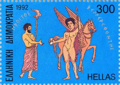 When he had received the wicked letter he first commanded Bellerophon to kill that savage monster the chimaera who was not a human being, but a goddess, for she had the head of a lion and the tail of a serpent, while her body was that of a goat, and she breathed forth flames of fire; but Bellerophon slew her, for he was guided by signs from heaven. Homer, The Iliad, Book 6 Proetus, Bellerophon (son of the King of Corinth Glaucus and Eurymede, and a grandson of Sisyphus) and Pegasus. Proetus asked his father-in-law King Iobates to kill Bellerophon. Iobates asked Bellerophon to kill the Chimera monster, assuming that he will not return alive. Bellerophon succeeded to kill the Chimera (or Chimaera) with the help of Athena and the winged horse Pegasus. He also defeated the Amazons in battle. Finally Bellerophon returned back and married the daughter of Iobates. ...and not far from the tomb is the temple of Athena Chalinitis (Bridler). For Athena, they say, was the divinity who gave most help to Bellerophontes, and she delivered to him Pegasus, having herself broken in and bridled him. Pausanias , Description of Hellas
