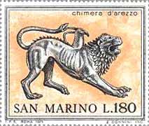 The Chimaera (or Chimaira) (the offspring of Typhon and Echidna ) the monster killed by Bellerophon . The Chimaera of Arezzo, Etruscan bronze statue 5th century BC, Arezzo, Italy, discovered in 1553, Archeological museum in Firenze, Italy. When he had received the wicked letter he first commanded Bellerophon to kill that savage monster the chimaera who was not a human being, but a goddess, for she had the head of a lion and the tail of a serpent, while her body was that of a goat, and she breathed forth flames of fire; but Bellerophon slew her, for he was guided by signs from heaven. Homer, The Iliad, Book 6