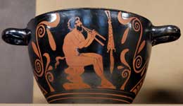 Satyr with aulos, Louvre MNE987, Creusa Painter Ajax and Cassandra, Kleophrades, 2422 --------------------------------------------------------------------