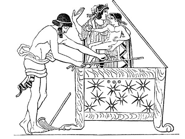 A large chest "Larnax, a carpenter holding probably a bow-drill