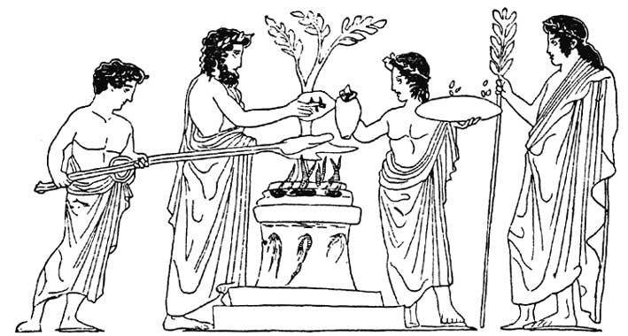 Sacrifice scene, red-figure crater by the Pothos Painter, ca. 430 BC420 BC, found in Athens.