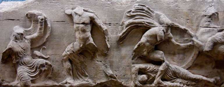 The British Museum, London, United Kingdom Artist/Maker Unknown Battle between Greeks and Orientals. Block from the South frieze of the Temple of Athena Nike, Athenian Acropolis. Marble, made in Athens, ca. 425 BC. Dimensions H. 45 cm (17 ½ in.) Credit line Former Elgin Collection Accession number GR 1816.6-10.161 (Cat. Sculpture 422) Location Main floor, room 19, Athens & the Acropolis, 430-400 BC Photographer/Source Jastrow (2006) All text is available under the terms of the GNU Free Documentation License