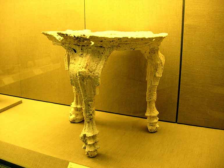 Volcanic ash cavity cast of a carved wooden table (2200-1700 BC) Santorini