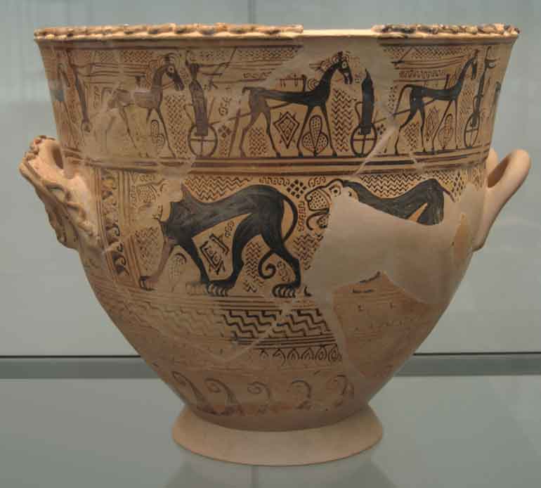Proto-attic “Krater”, ca. 700 BC. Snakes' ornamentations are typical of funerary vases.