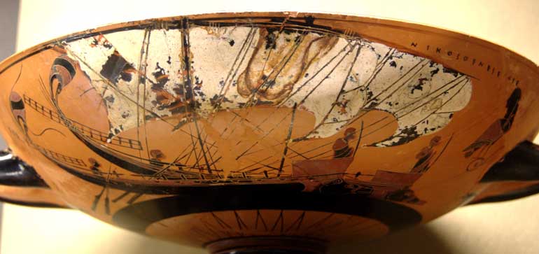 Boat. Side A from an Attic black-figured cup, ca. 520–510 BC. From Vulci.