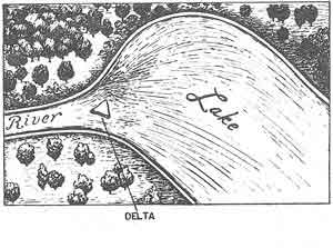 River Delta The concept of the delta may perhaps be clarified by further exposition. Webster furnishes the following definition: (1) Delta is the name of the fourth letter of the Greek alphabet (equivalent to the English D) from the Phoenician name for the corresponding letter. The Greeks called the alluvial deposit at the mouth of the Nile, from its shape, the Delta of the Nile. (2) A tract of land shaped like the letter "delta," especially when the land is alluvial, and enclosed within two or more mouths of a river, as the Delta of the Ganges, of the Nile, of the Mississippi" .