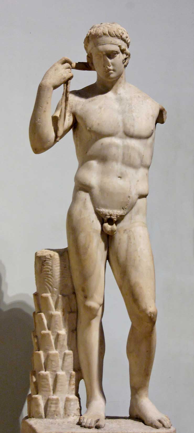 The British Museum, London, United Kingdom Artist/Maker Unknown So-called “Farnese Diadumenos”: athlete tying the victor's ribbon around his head. Marble, Roman copy from the 1st century AD after a Greek original of ca. 440 BC attributed to Pheidias. The subject is similar to that of Polykleitos but varies slightly in stance. Dimensions Unspecified Location Main floor, room 23, Greek & Rome Photographer/Source Jastrow (2006) All text is available under the terms of the GNU Free Documentation License