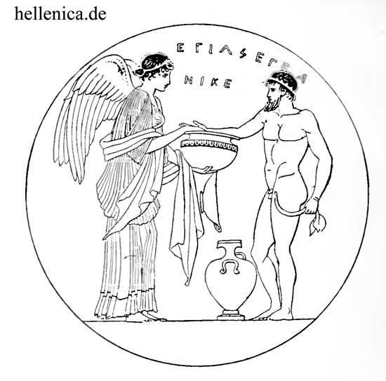 ![]() # Vase Number: 275378 Athenian Red-figure Cup (Kylix now lost) Athens 475 to 425 BC Inscriptions: Signature: EGIASEGRA[PSEN] Attributed To: Douris By Beazley Decoration: I: Athlete, Nike with Dinos, Man with Strigil, Hydria Publication Record: Kephalidou, E., Nikitis, Eikonographiki meleti tou archaiou ellinikou athlitismou (Thessaloniki, 1996): PL.45.G85 (DRAWING OF I) Beazley, J.D., Attic Red-Figure Vase-Painters, 2nd edition (Oxford, 1963): 1670.58BIS