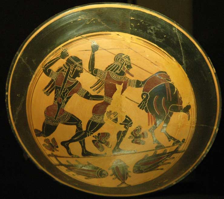 Calydonian Boar Hunt, Louvre E670 (?). Black Figur Pottery Lakoniea Naucratis Painter, c. 550 BC