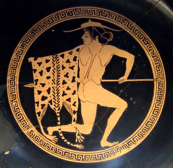 Onesimos kylix man leopard skin Staatliche Antikensammlungen