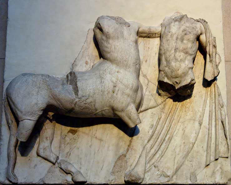 Lapith fighting a centaur. South Metope 6, Parthenon, ca. 447/433 BC.