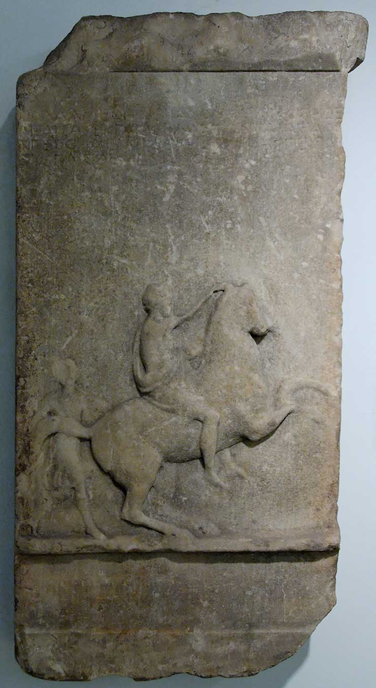 The British Museum, London, United Kingdom Artist/Maker Unknown Horseman with attendant. Inscription: “after many pleasant days with my companions I, who sprang from earth, am earth once more. I am Aristokles of Piraeus, son of Menon.” Marble funerary stele, ca. 350 BC. Dimensions Unspecified Credit line Former Elgin Collection Accession number Cat. Sculpture 638 Location Main floor, room 20, Greece & Lycia, 400-330 BC Photographer/Source Jastrow (2006) All text is available under the terms of the GNU Free Documentation License