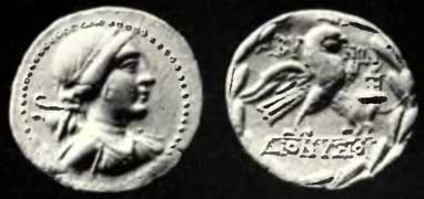 Eagle , text "ABYDENON", a bunch of grapes, text TARMENIKOY there was a temple of Artemis in Abydos