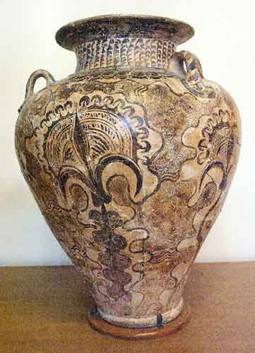 Floral Style Minoan Pottery, Archaeological Museum of Herakleion Crete , Photo by Agon S. Buchholz Floral Style is the pottery Style of Minoan Pottery in the Neopalatial Period 1650 BC - 1450 BC A Characteristic of the Flora style are motivs with flowers and plants painted with black color on a bright background. Creto-Minoan Ceramic styles Agios Onouphrios Style | Barbotine Style | Floral Style | Kamares Style | Koumassa Style | Marine Style | Orientalizing Style | Palace Style | Pyrgos Style | Vassiliki Style | White Style Retrieved parts from "http://en.wikipedia.org/"