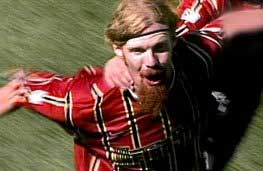 Lalas (The Great Red Hope) was born on June 1, 1970, in Birmingham, Michigan, to a Greek father, Demetrius Lalas, and an American mother, Anne Harding Woodworth. His father was a professor who later became the director of Greece's national observatory, while his mother is a writer and poet. His brother, Greg Lalas, played in MLS with the Tampa Bay Mutiny and is currently the editor-in-chief of MLSsoccer.com. He was married in December 2002 to Anne Rewey, and has two children, Sophie and Henry. Playing career High school Lalas attended Cranbrook Kingswood School in Bloomfield Hills, Michigan. While he did not begin playing soccer until he was eleven, he had honed his skills enough to be named the 1987 Michigan High School Player of the Year his senior year. In addition to playing soccer, he was a member and a captain of his state's high school state championship hockey team. Lalas was rated for the Ontario Hockey League Midget draft in 1987, however, was not selected.[2] College Lalas attended Rutgers University where he played on the men’s soccer team from 1988 to 1991. During his four seasons at Rutgers, he led the Scarlet Knights to the NCAA Final Four in 1989 and the National Championship Game in 1990.[3] Lalas was named a third team All-American in 1989 and 1990. In 1991, he gained first team All American recognition and was selected as both the Hermann Trophy and Missouri Athletic Club Player of the Year awards. As in high school, Lalas also played hockey in college, leading the team in scoring in 1989.[4] Arsenal After college and the 1992 Olympics, Lalas trained with former Arsenal player Bob McNab in California. This led to a trial with Arsenal during the winter of 1992. Lalas trained with and played for the Reserve team.[5] Padova Following the 1994 FIFA World Cup, Lalas signed with Italian Serie A club Padova. While Lalas anchored the team’s defense and scored three goals off set pieces (including against AC Milan & Internazionale), Padova finished the 1994-1995 season at the bottom of the standings. Only after winning a relegation play off on June 10, 1995, did the team ensure its survival in the top ranks for the next season. On June 25, 1995, Major League Soccer (MLS) signed Lalas to a play for one of the new league’s teams. While MLS had intended to begin playing in 1995, it had run into difficulties and so delayed the first season until 1996. In order to allow Lalas to maintain his match fitness, MLS loaned him back to Padova for the 1995-1996 season. Lalas last played for Padova in a home game against Lazio on February 25, 1996. MLS Prior to the inaugural Major League Soccer (MLS) draft in February 1996, the league allocated high profile players throughout the league’s ten teams. As part of this process, MLS placed Lalas with the New England Revolution. Lalas was a regular on the Revs backline during the 1996 and 1997 seasons. In November 1997, the Revs loaned Lalas to Ecuadorian First Division Club Emelec for a month. He returned to New England at the end of December only to find himself traded to the MetroStars on February 4, 1998. He spent the 1998 season with the MetroStars before being traded, along with Tony Meola, to the Kansas City Wizards for Mark Chung and Mike Ammann on January 28, 1999. Lalas spent one season with the Wizards before announcing his retirement on October 10, 1999. Just over a year later, he returned to playing when he signed with the Los Angeles Galaxy as a discovery player on January 14, 2001. Nearly three years later, he retired again, this time permanently, on January 12, 2004.[6] National team Lalas earned 96 caps, scoring nine goals, with the U.S. National Team between 1991 and 1998. His first cap came in a 2-2 tie with Mexico on March 12, 1991 in the 1991 NAFC Championship.[7] He gained his second cap four days later in a 2-0 win over Canada. While he started both games, he did not gain another cap until he came on for Fernando Clavijo in a 2-2 tie with Denmark on January 30, 1993. His next game, a start, came on March 23, 1993 in a 2-2 tie with El Salvador. While he became a fixture on the team through the rest of 1993, he did not cement his position as a starter in the U.S. central defense until the beginning of 1994. He went on to start and play all ninety minutes in the four U.S. games of the 1994 FIFA World Cup and was named an honorable mention All-Star. On June 11, 1995, Lalas flew directly from a relegation playoff game with his club team, Padova, in order to appear in the second half of a 1995 U.S. Cup victory over Nigeria.[8] His contributions to the national team led to his selection as the 1995 U.S. Soccer Athlete of the Year. While Lalas was on the roster for the U.S. at the 1998 FIFA World Cup, he never entered a game.[9] His last cap had come in the final U.S. tuneup for the finals, a May 30, 1998 scoreless tie with Scotland where he was a second half substitute for Earnie Stewart. Alexi Lalas international goals
