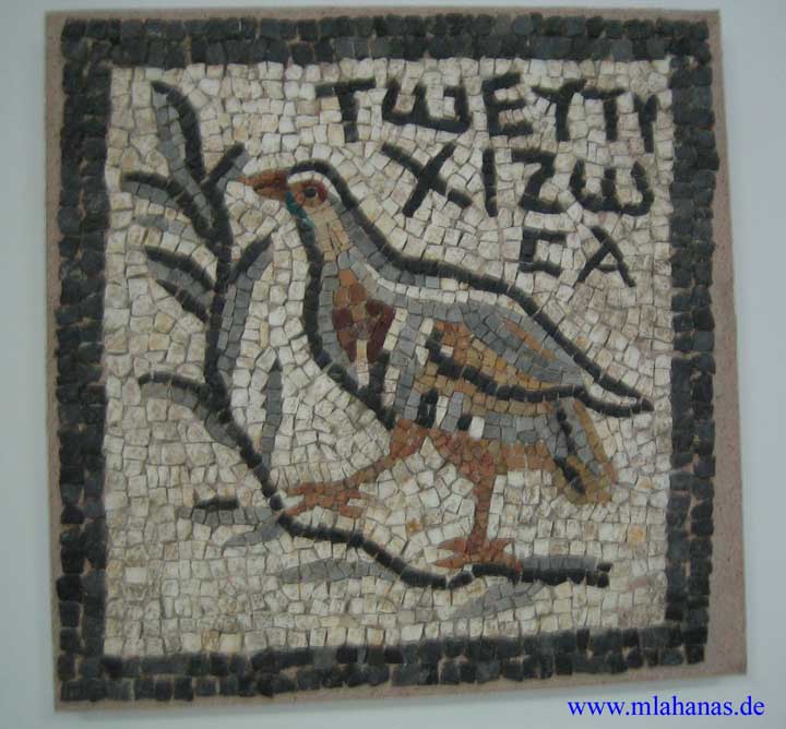 Dion, "House of Zosas", mosaic of a Grouse with the inscription "for lucky Zosa"